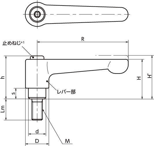 ■ねじ部がステンレス製のフラットクランプレバー。上部スペースに制限がある用途に適しています。