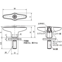 型式 タイプ 材質 レバー色 W M(並目) H H' h s T D d Dw tw s1 Lm 歯数 最大荷重