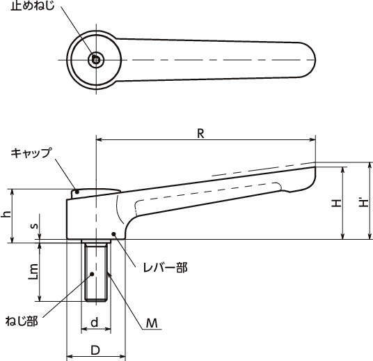 型式 タイプ 材質 レバー色 M(並目) R H H' h s D d Lm 歯数 最大荷重