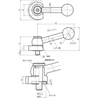 LZX-50-KV 角度つきレバータイプ スティール製 右回転 50 M10 1.5 11 116 62 34.5 12 13 30 28 6 12 24 28 261.6° 86.75 6 315