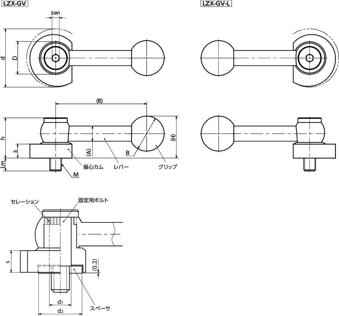 ■カムレバーは、偏心カム・スペーサ・固定用ボルト・レバーで構成されています。