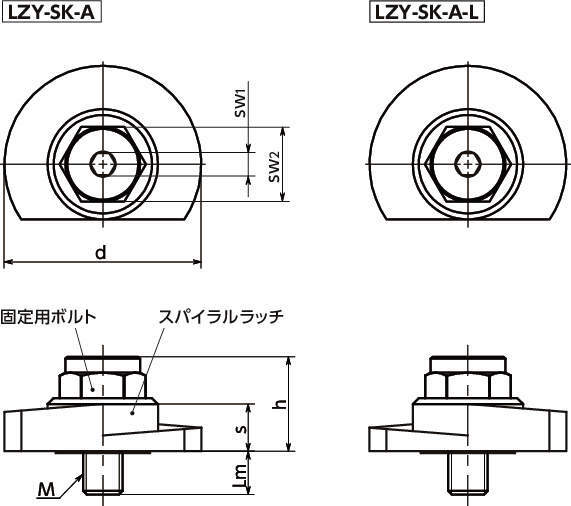 ■スパイラルラッチの上部に六角部を設けています。スパナなどを利用してスパイラルラッチを回転させることができます。