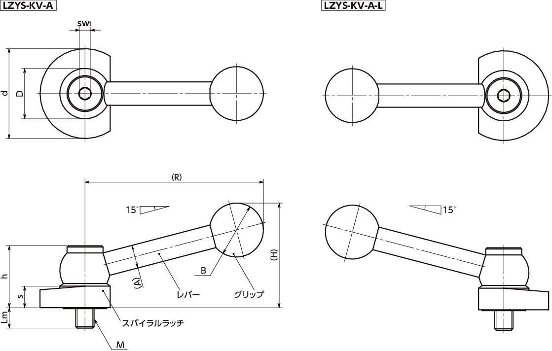 ■スパイラルラッチとレバーは、セレーションによりかみ合っており、スパイラルラッチに対するレバーの位置を組みつけの際に設定できます。