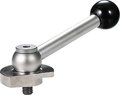 ■スパイラルラッチを利用した締結用のレバー。下方向に無段階に締めつけが調整できます。