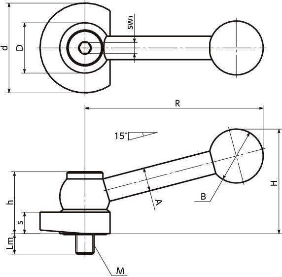 ■スパイラルラッチを利用した締結用のレバー。下方向に無段階に締めつけが調整できます。