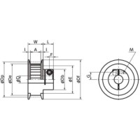 | 型式 | 歯形 | ピッチ | 適用ベルト幅 | 歯数 | Dp | De | Db | E | Df | W | A | I | L | F | G | M |
