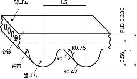 | 型式 | 歯形 | ピッチ | ベルト幅 | ピッチ周長 | 歯数 |
