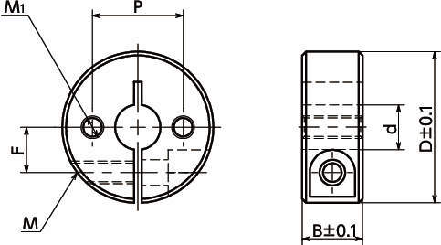 ・固定穴(めねじ)つきのセットカラー。固定穴(めねじ)を利用して、ホイール・フランジ・プレートなどあらゆる機械・装置への取りつけが可能です。