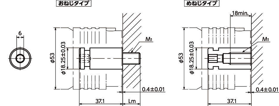 ・おねじタイプの取りつけ相手のめねじ穴、ナットは強度区分8以上を満たす必要があります。(JIS B 1052-2:2014準拠)