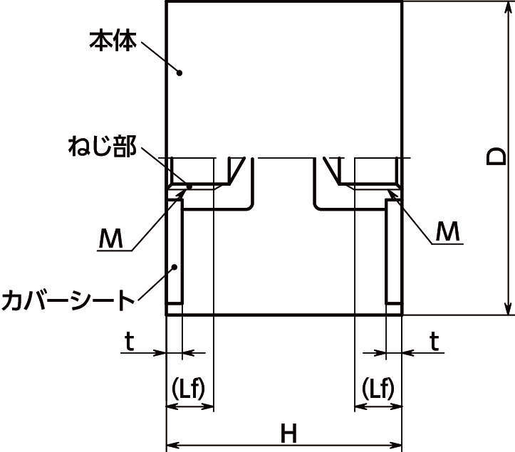 ・両側めねじタイプ。ねじ部とカバーシートはステンレス製。