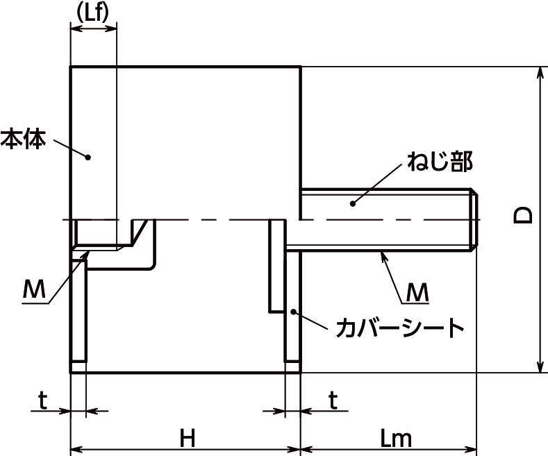 ・片側めねじ・片側おねじタイプ。ねじ部とカバーシートはステンレス製。