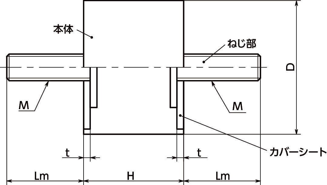 ・両側おねじタイプ。ねじ部とカバーシートはステンレス製。