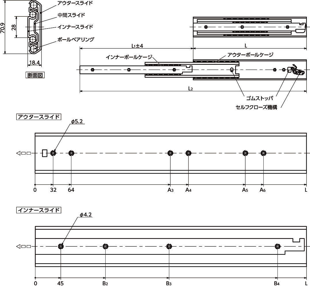 ・各スライドは左右とちら側にも取りつけることが可能です。