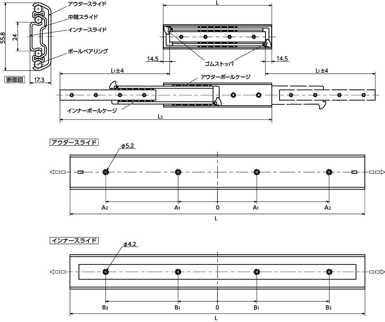 ・各スライドは左右とちら側にも取りつけることが可能です。
