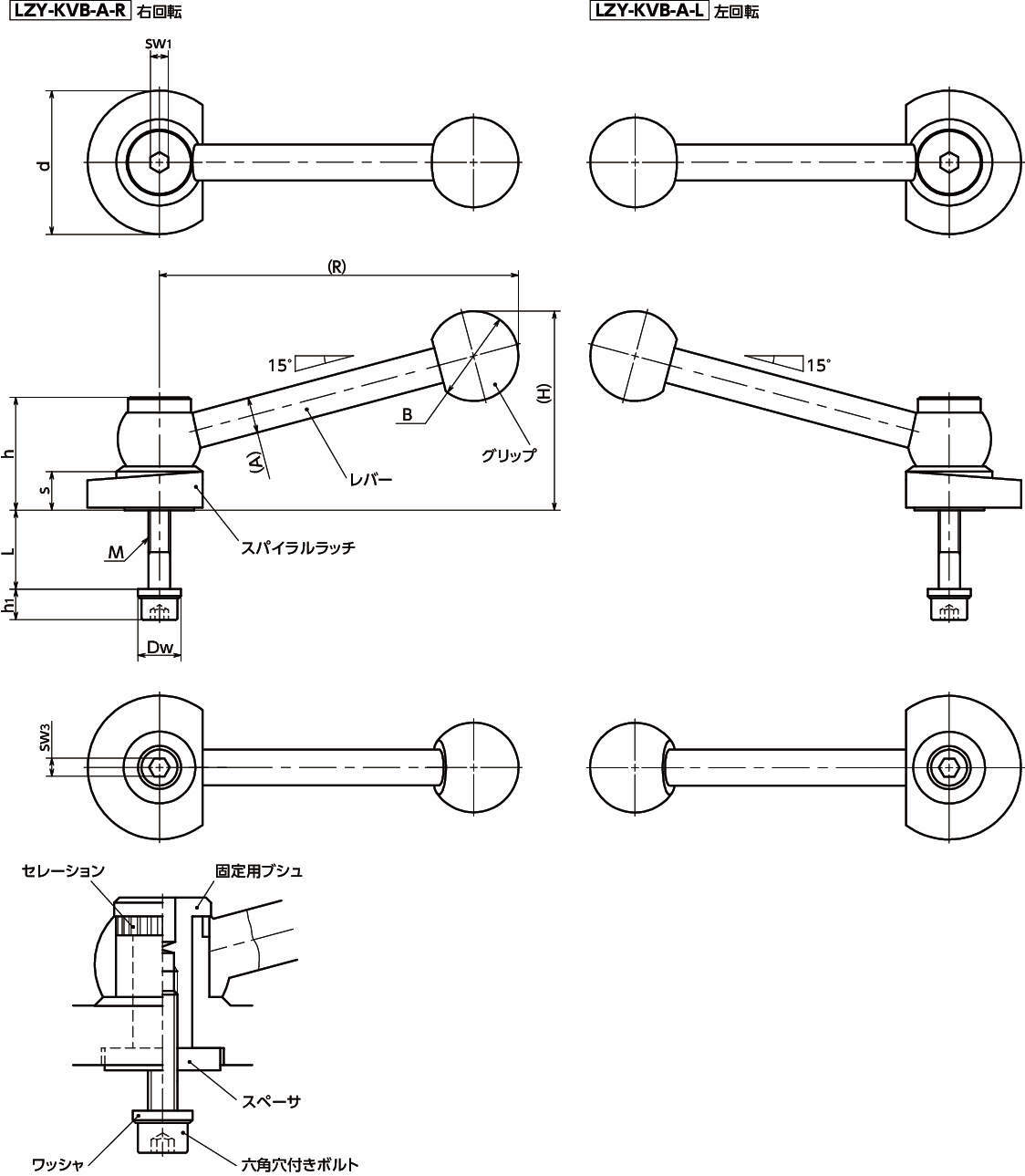 ラッチレバー 角度つきレバータイプ・上方向締めつけ・背面取りつけ LZY-KVB-A