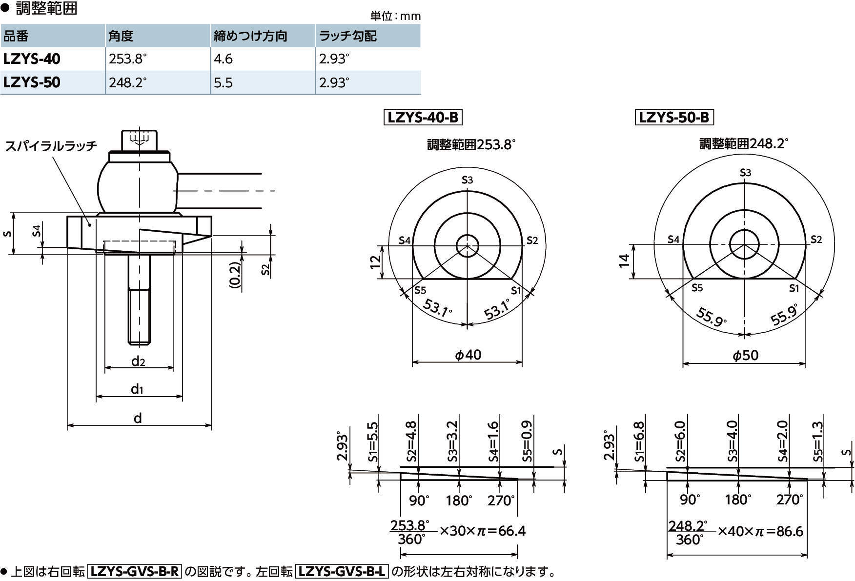 ・スパイラルラッチを利用した締結用のレバー。下方向への締めつけが無段階に調整できます。
