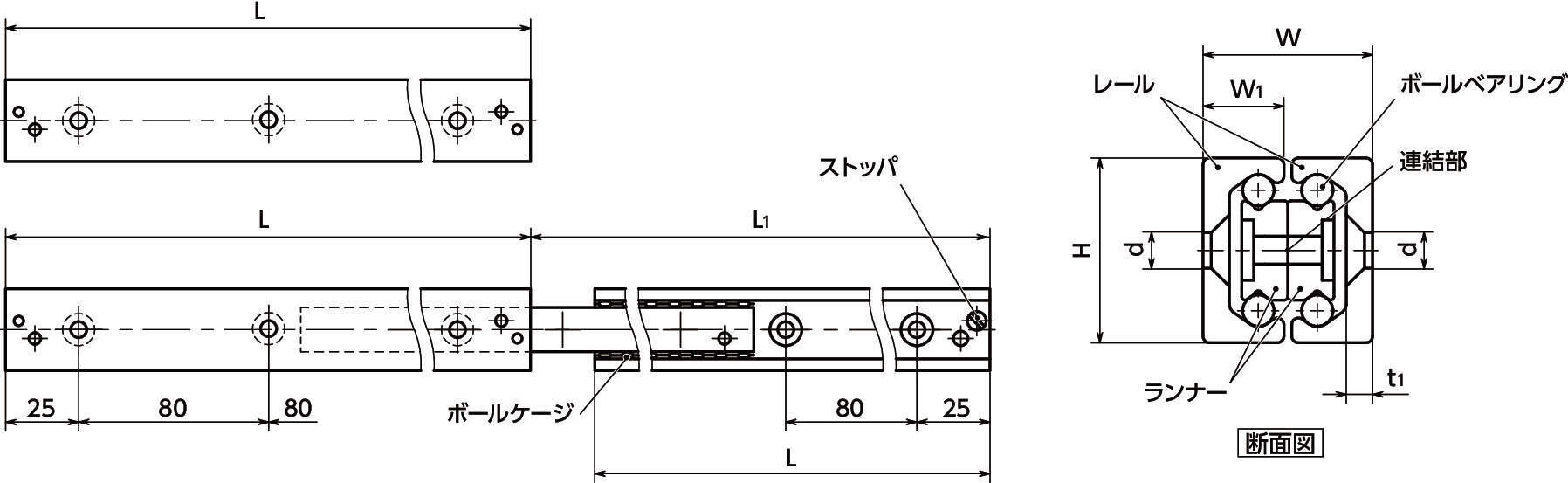 ・レールの転走面は高周波焼入れ済み。低摩擦なボールベアリングを組み合わせることにより、高い定格荷重性能・静粛性能・耐摩耗性能を実現。高寿命です。