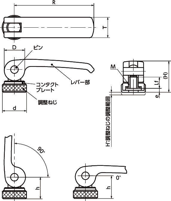 ・調整ねじによってレバーを任意の向きにした状態で、締めつけを調整することができます。