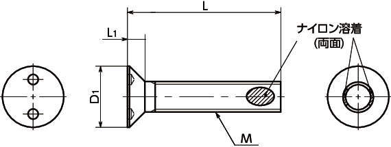 ・ねじ部に溶着したナイロンの摩擦によってねじの戻り回転を抑制します。