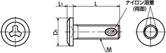 ・ねじ部に溶着したナイロンの摩擦によってねじの戻り回転を抑制します。
