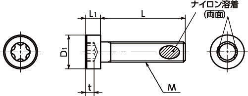 ・ナイロン溶着つきのヘクサロビュラ穴付き低頭ボルト。