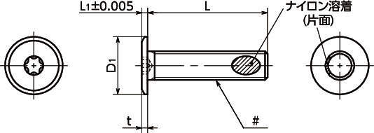 ・ナイロン溶着つきのヘクサロビュラ穴付き超極低頭ボルト。インチねじタイプ。
