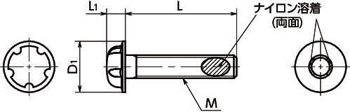・頭部は5つの溝を備えた丸形の特殊形状。ナイロン溶着つき。
