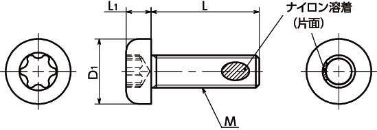 ・ナイロン溶着つきのヘクサロビュラ穴付きなべ小ねじです。