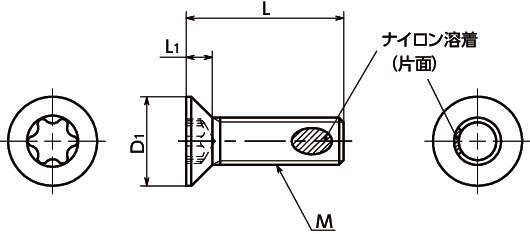 ・ナイロン溶着つきのヘクサロビュラ穴付き皿ボルトです。
