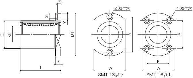 ・NBスライドブッシュには完全な互換性があり、シャフトとランダムに組合わせて使用可能です。