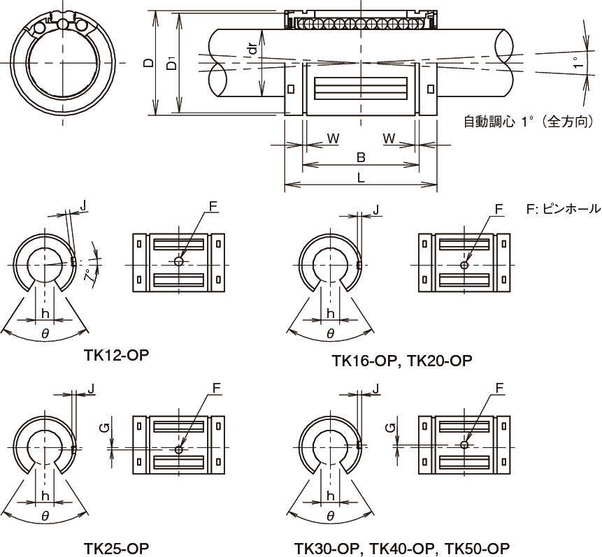 ・フローティングシールは、NBトップボールの特長である自動調心性が働いて両端面の外径、内径に偏心が生じてもスムーズにシャフトに追従します。