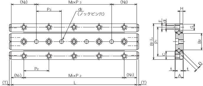 | L | A | t | B1 | B2 | C | P1 | M1×P2 | N1 | F | d1 | G | H | M2×P3 | N2 | d2 | T | |||||||||