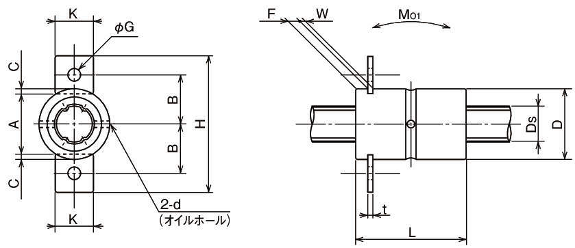 ・NBボールスプラインは転送溝を持ったスプライン軸と外筒から構成されています。スプライン外筒内部には保持器、サイドリング、鋼球が組込まれており、滑らかに摺動できるように設計・制作されています。