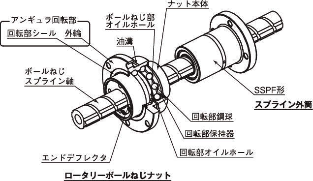 ・SPBF形にはロータリーボールねじナットとボールスプライン外筒が組合わされています。
