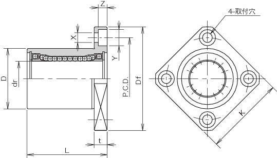 スライドロータリーブッシュ|SRE形・角フランジ形 SREK