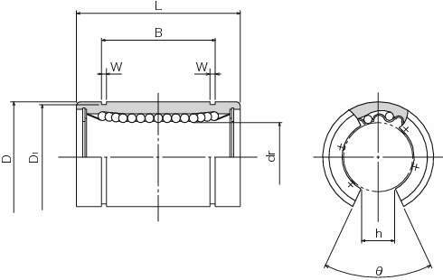 ・NBスライドブッシュは円筒形状の外筒に保持器が組み込まれ、保持器の案内部はボールが滑らかに循環できるように設計・製作されており、滑らかな直線運動を可能にしています。
