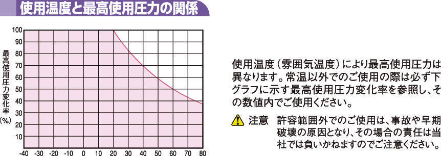 | 使用温度範囲 | 空気:-40℃~+80℃ 水:0℃~+50℃ |