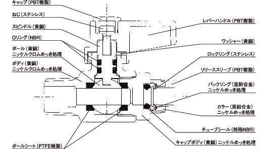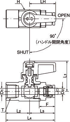 ボールバルブ プッシュワンタイプ(ストレート・メスねじ)