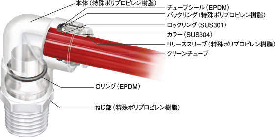 クリーンエア・純水・薬液配管用プッシュワン継手