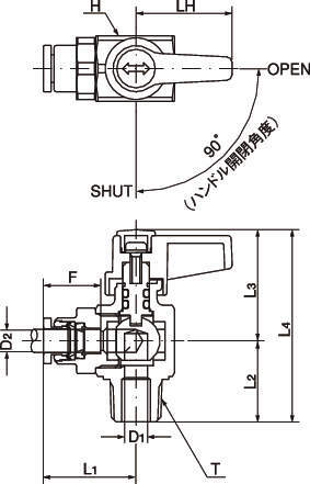 ボールバルブ プッシュワンタイプ(アングル・オスねじ)