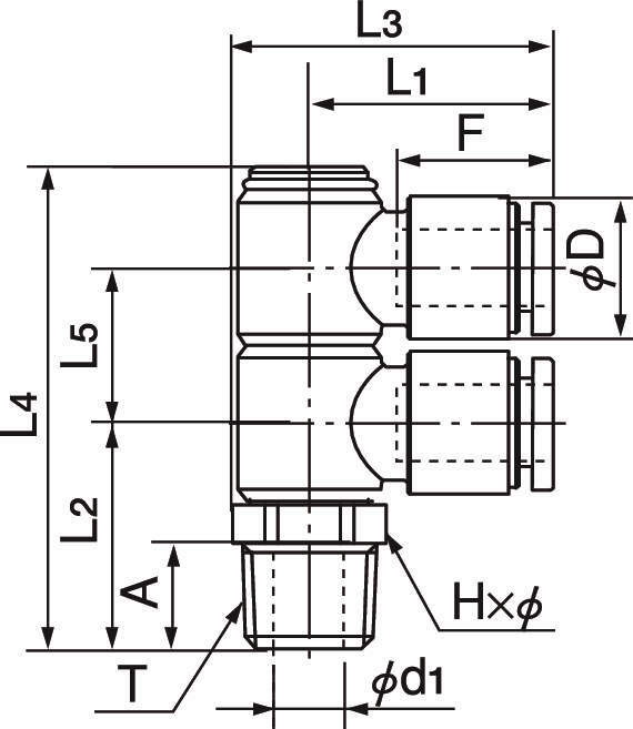 | ELWB6-PT1/4 | ダブルユニバーサルエルボ | ミリサイズ | 6mm | R1/4 | 22.8 | 21.8 | 30.5 | 45.3 | 13.5 | 11.0 | 15 | 14.0×15.4 | 12.6 | 7 | - | 35 |
