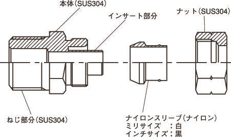 ・JIS B 8381-1995(空気圧用たわみ管の管継手)適合品です。