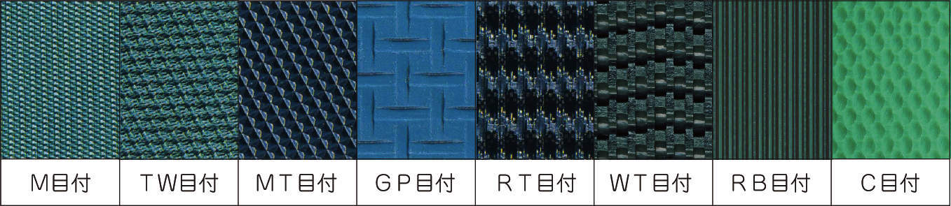 | 桟加工 | ニューライトグリップには主として整列搬送や荷こぼれ防止、または傾斜搬送時の搬送物のすべり防止として、各種の桟をベルトに取り付けることができます。 |