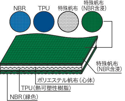 ・ニッタ独自の特殊合成ゴム・特殊帆布を採用し、優れた耐摩耗性を実現しました。