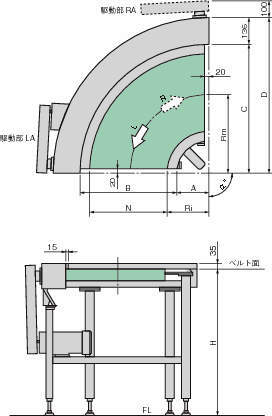| ベルト外周速度(m/min) | 標準仕様:MAX45(定速 3Rナイフエッジ仕様:MAX30(定速) |
