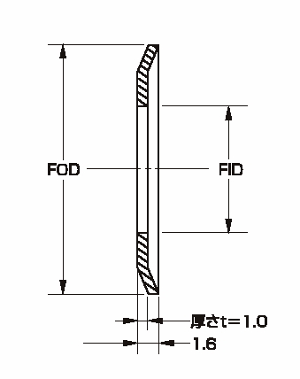 | 型式 | 外径FOD(mm) | 内径FID(mm) | 厚さt(mm) | ||||||||