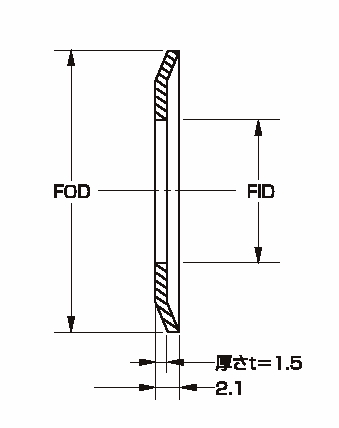 | 型式 | 外径FOD(mm) | 内径FID(mm) | 厚さt(mm) | |||||||||||||||||