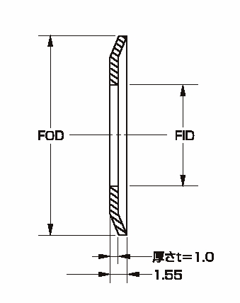 | 型式 | 外径FOD(mm) | 内径FID(mm) | 厚さt(mm) | |||||||||||||||