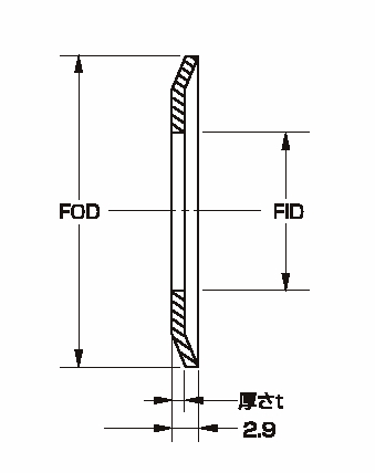 | 型式 | 外径FOD(mm) | 内径FID(mm) | 厚さt(mm) | |||||||||||||||
