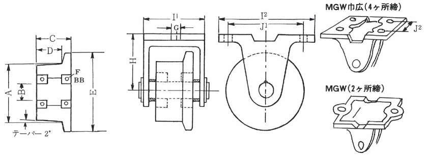 ・固定金具には、標準塗装品以外にも、ナイロン粉体塗装品(完全防水型でベアリング・軸等ステンレス製)がありますので、お問い合わせください。
